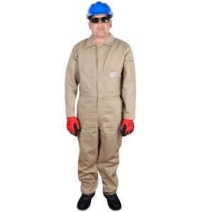 100% COTTON FR COVERALL 320GSM EN ISO 11612:2008, EN 15025:2002 STANDARD WITH ADJUSTABLE SLEEVE EDGES WITH WRIST BUTTON ENCLOSURE COLOUR BEIGE SIZE S-5XL