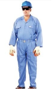 100% TWILL COTTON COVERALL, BRAND – VAULTEX, MODEL – EMG, FEATURES – TWO WAY ZIPPER WITH STORM FLAP AND 1 UPPER CHEST SNAP, 2 CHEST POCKETS WITH VELCRO FLAP, TROUSER WITH 2 SWING POCKETS, 2 SIDE POCKETS WITH VELCRO FLAPS AND 2 PATCH POCKETS AT THE BACK, ELASTICIZED WAIST BAND AT BACK WITH FASTENING METAL BUCKLE FOR SAFETY AND COMFORT. SANFORIZED, MERCERIZED & PRE-SHRUNK, FABRIC WEIGHT: 190 GSM, COLOR – PETROL BLUE, SIZE – SMALL TO 5XL