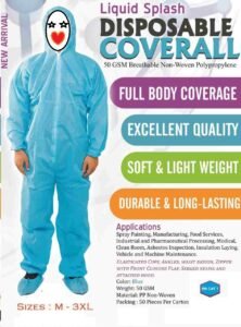 BLUE DISPOSABLE COVERALL WITH HOOD 50 GSM, DC50G ASSORTED SIZE MADE IN CHINA DC50G