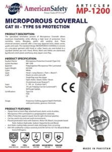 - MICROPOROUS COVERALL CAT-III TYPR 5/6 PROTECTION CODE MP-1200 FABRIC