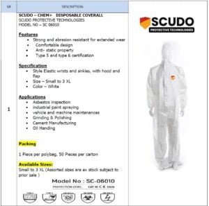 Scudo SC-06010 Chem+ Disposable Coverall