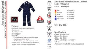 - ANTI-STATIC FLAME RETARDANT COVERALL WITH REFLECTOR 300 GSM